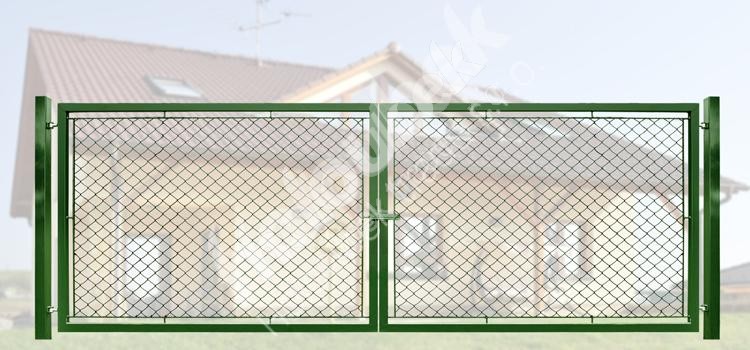 Vypletená čtyřhranným poplastovaným pletivem. Za výplet pozinkovaným pletivem příplatek 15%. Součástí brány jsou 2 ks nosných sloupů 80x80x3 mm.