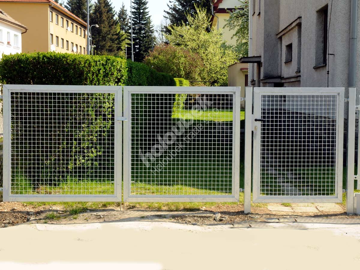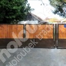 Křídlová brána a branka s dřevěnou výplní v RD v Poličce