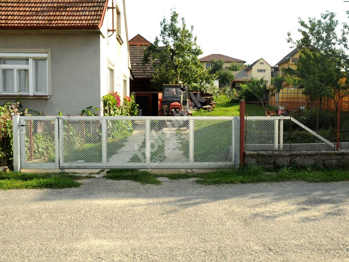 Posuvná brána s vestavěnou brankou u RD v Netíně